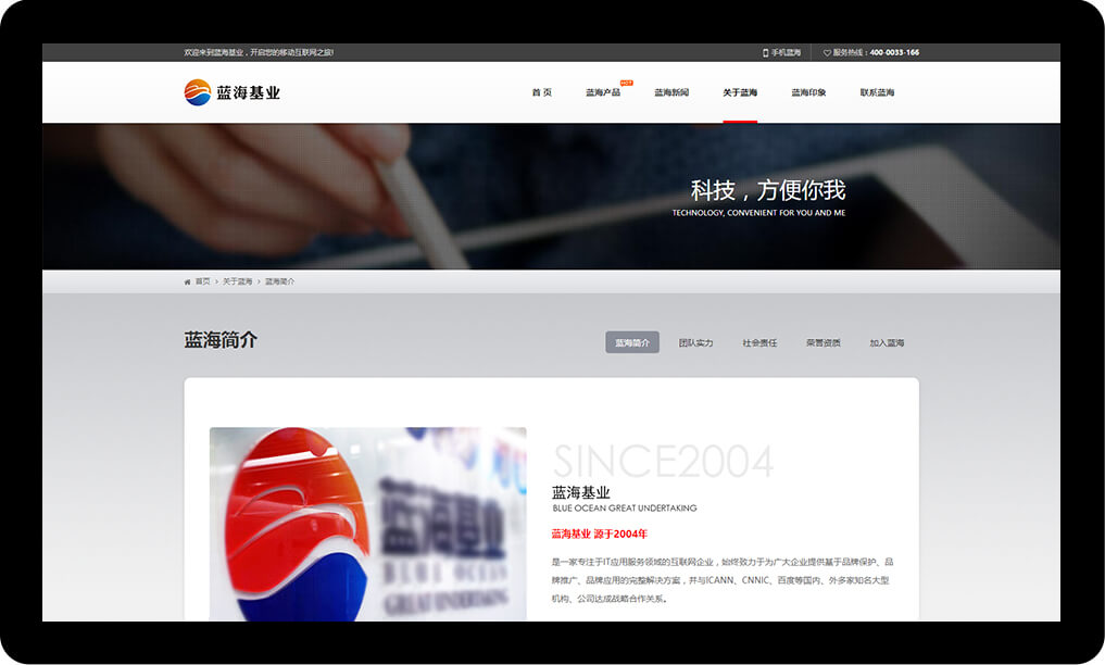藍(lán)海基業(yè)源于2004年,秉承以數(shù)字化興企、引產(chǎn)業(yè)興城的理念,深耕品牌數(shù)字化領(lǐng)域和營(yíng)銷數(shù)字化領(lǐng)域。