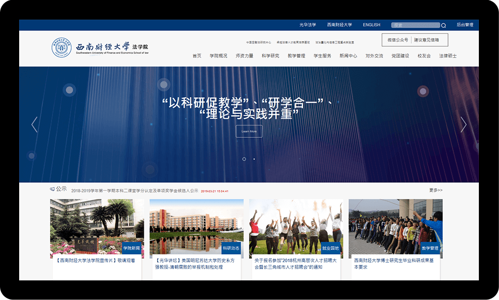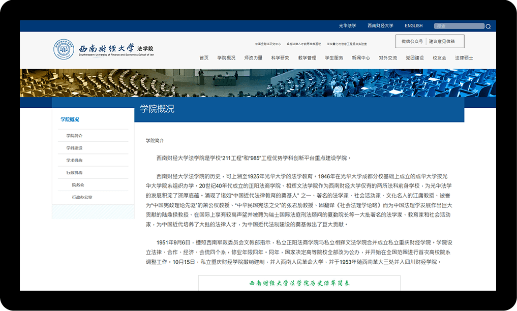 西南財經(jīng)大學法學院是學?!?11工程”和“985”工程優(yōu)勢學科創(chuàng)新平臺重點建設(shè)學院。