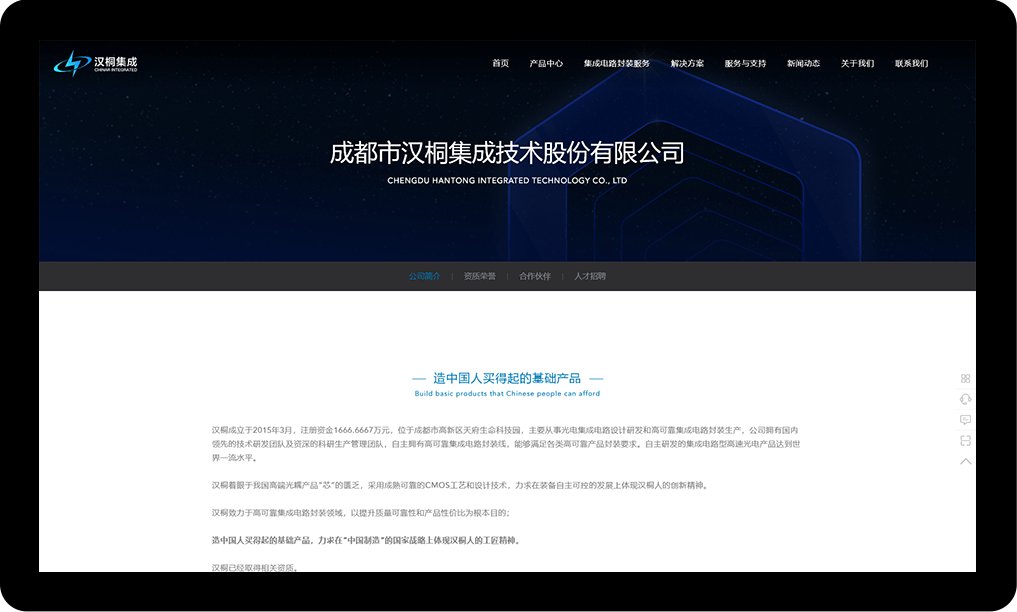 漢桐成立于2015年3月,注冊(cè)資金1666.6667萬(wàn)元,位于成都市高新區(qū)天府生命科技園,主要從事光電集成電路設(shè)計(jì)研發(fā)和高可靠集成電路封裝生產(chǎn),公司擁有國(guó)內(nèi)領(lǐng)先的技術(shù)研發(fā)團(tuán)隊(duì)及資深的科研生產(chǎn)管理團(tuán)隊(duì),自主擁有高可靠集成電路封裝線,能夠滿足各類高可靠產(chǎn)品封裝要求。